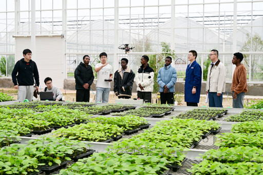 African students learn about drone-based crop growth model data collection at a vegetable seedling smart factory exhibition center in Jinhua, Zhejiang Province, on Oct. 31, 2025. Photo: IC PHOTO