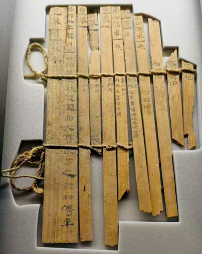 Slips unearthed from the archaeological site of Xuanquanzhi, a Han-Dynasty post office in today’s Dunhuang, Gansu Province, on display at the National Art Museum of China in June 2025 Photo: Rong Zhi/CSST