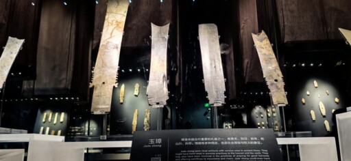 Beyond bronzes, Sanxingdui has yielded large quantities of pottery, jade, and stone artifacts. Jade relics include zhang (jade blades), bi (jade discs with circular holes in the center), and cong (tube-shaped jade), which are almost identical to those excavated at Erlitou and Yinxu, all serving as sacrificial ritual instruments. In early Chinese civilization, jade complemented bronze as a key symbol of ritual order. The form of Sanxingdui zhang closely resembles that of the Central Plains and most parts of China. The use of jade, symbolizing communication between heaven and earth, deity and human, originated in the Neolithic period and formed a distinct ritual system in early Chinese civilization—a special cultural phenomenon not found in other ancient civilizations of the world.