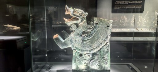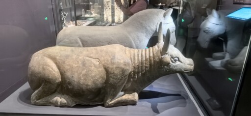 Entering the archaeological site park of the Xixia Imperial Tombs, visitors find that the raw, earthy tones of gravel allow the thematic museum to blend seamlessly into the surrounding Gobi landscape. Nestled discreetly beside the ruins, it presents itself in an understated, almost “hidden” form. Inside the exhibition halls, a lifelike gilded bronze ox and lustrous green-glazed chiwen (a mythical beast) attest to the superb craftsmanship shared by the Western Xia and Central Plains civilizations. Fragmented steles inscribed in Tangut and Han scripts offer glimpses into the depth of cultural exchange between the Song (960–1279) and Western Xia dynasties. Architectural components such as sutra pillars bear witness to Buddhist beliefs, while funerary artifacts—including coins, silk, and beaded ornaments—serve as material evidence of the Western Xia’s links to the ancient Silk Road.
