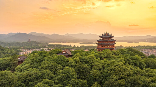 An aerial view of West Lake in Hangzhou, Zhejiang Province Photo: TUCHONG