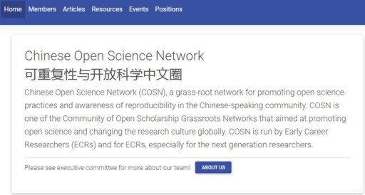 Over the past decade, young Chinese researchers have formed an online, Chinese-language open science community—the Chinese Open Science Network (COSN)—leveraging the internet to promote open, rigorous, and reproducible research through knowledge sharing, skills training, and scholarly collaboration. Since its inception, COSN has already exerted a broad influence within China’s psychological research community.