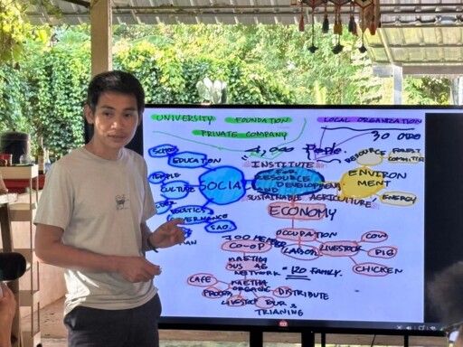 In the 1960s, the Thai government and private companies began to promote monoculture farming practices, requiring villagers to plant cash crops, along with the extensive use of chemical fertilizers and pesticides. Although farmers retained ownership of their land, they no longer had full autonomy over what to grow, how much to grow, or when to grow. “Farmers were like hired laborers” is the main recollection of this period. Heavy reliance on agrochemicals led to declining soil fertility, polluted water sources, and ecological degradation. At the same time, many villagers began experiencing health problems due to pesticide exposure.