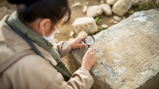 A scholar interpretes a tablet inscription. In the AI era, historical imagination and embodied fieldwork remain critical. Photo: TUCHONG