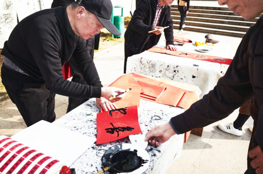 An elderly calligrapher writes Spring Festival couplets for neighborhoods at Yangluo Street in Wuhan, Hubei Province, on Dec. 19, 2025. Photo: IC PHOTO
