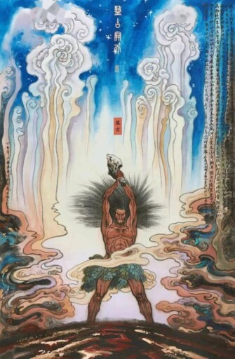 FILE PHOTO: A drawing depicting the Chinese myth of Pangu splitting heaven and earth, painted by modern artist Feng Yuan